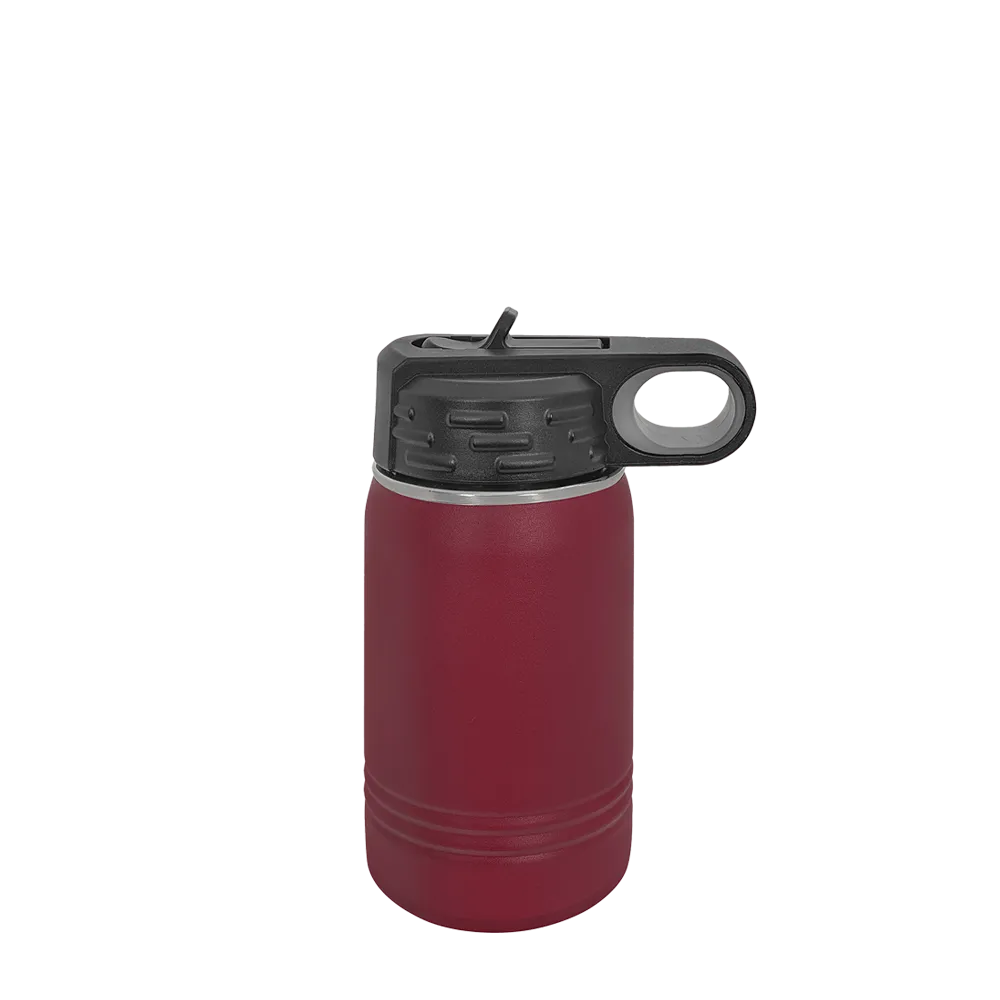 The superior hot cold retention of the double wall insulated Polar Camel high endurance drinkware is now available in a 12oz Kids Bottle! The stainless steel exterior is constructed of sweat free technology and the screw-on lid features a flip-top straw and soft rubber finger hold, making for an easy drinking and carrying experience. Available in Stainless Steel and 16 vibrant powder-coated colors they customize beautifully and make a great incentive or personalized gift.