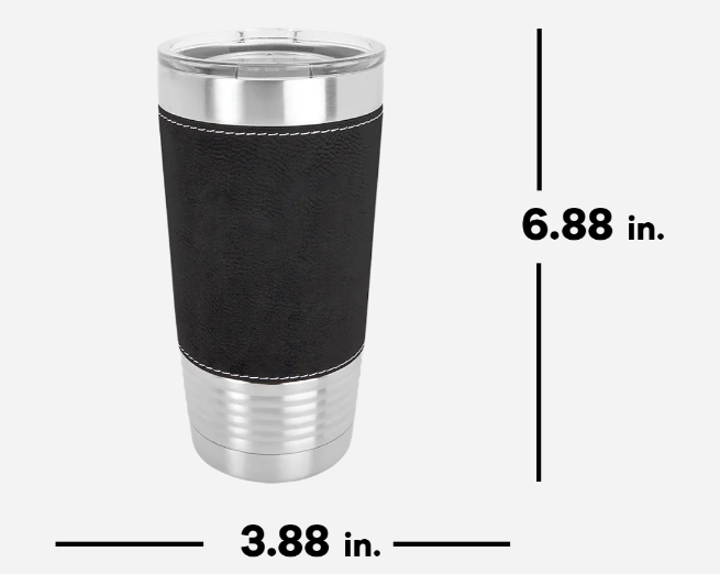 The Polar Camel Laserable Leatherette Tumbler is constructed in the classic 20 oz tumbler style with double-wall vacuum insulation that will keep your drink the ideal temperature for hours. Clearly see and easily sip from your tumbler with the BPA-free clear lid. Wrapped in laserable leatherette, showcase your customer’s logo on a variety of leatherette colors. Comfortably travel with the spill-resistant slider lid and cupholder friendly base.
