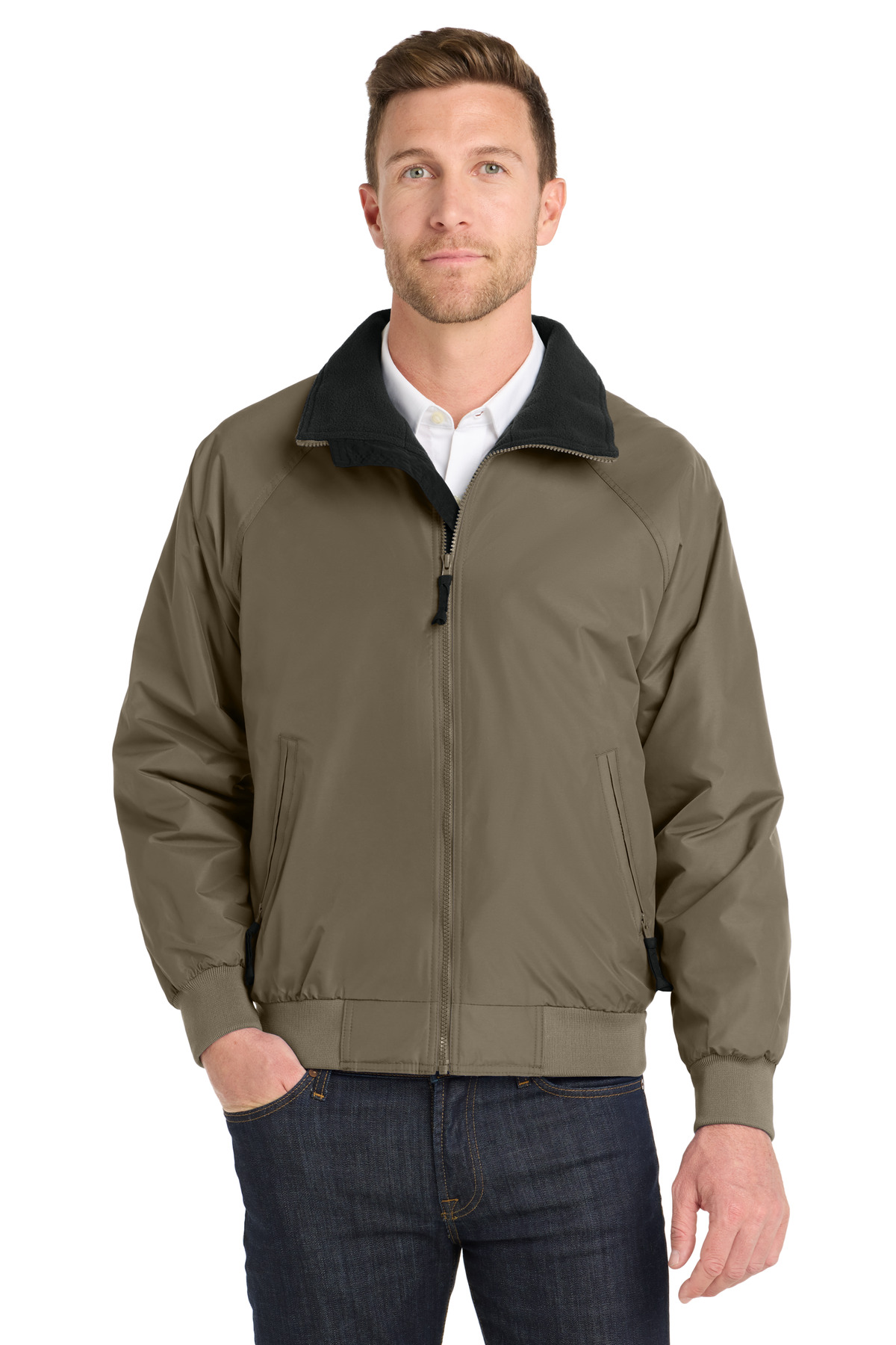 A long-time favorite the Challenger has a traditional design and a wind-resistant water-resistant Teklon nylon outer shell to keep you warm and dry. With plenty of color choices this rugged durable jacket has a heavyweight fleece lining and it’s our time-tested top performer. 100% Teklon nylon outer shell with water-resistant finishVislon zipper9.3-ounce 100% polyester fleece body lining 3-ounce polyfill insulation and 100% polyester lining in sleeves for easy on/off Rib knit cuffs and waistband Slash zippered pockets interior zippered pocket Port Pocket for decoration access
